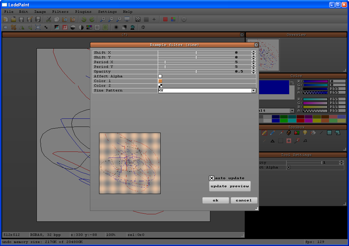 Entre las muchas acciones realizables mediante LodePaint se encuentran las de selección de fragmentos con varita, rotación de la posición y gestión libre tanto de las tonalidades como de otros parámetros que de una manera u otra afectan al resultado final de los elementos tratados. También brinda la posibilidad de aplicar varios filtros a las imágenes en cuestión.